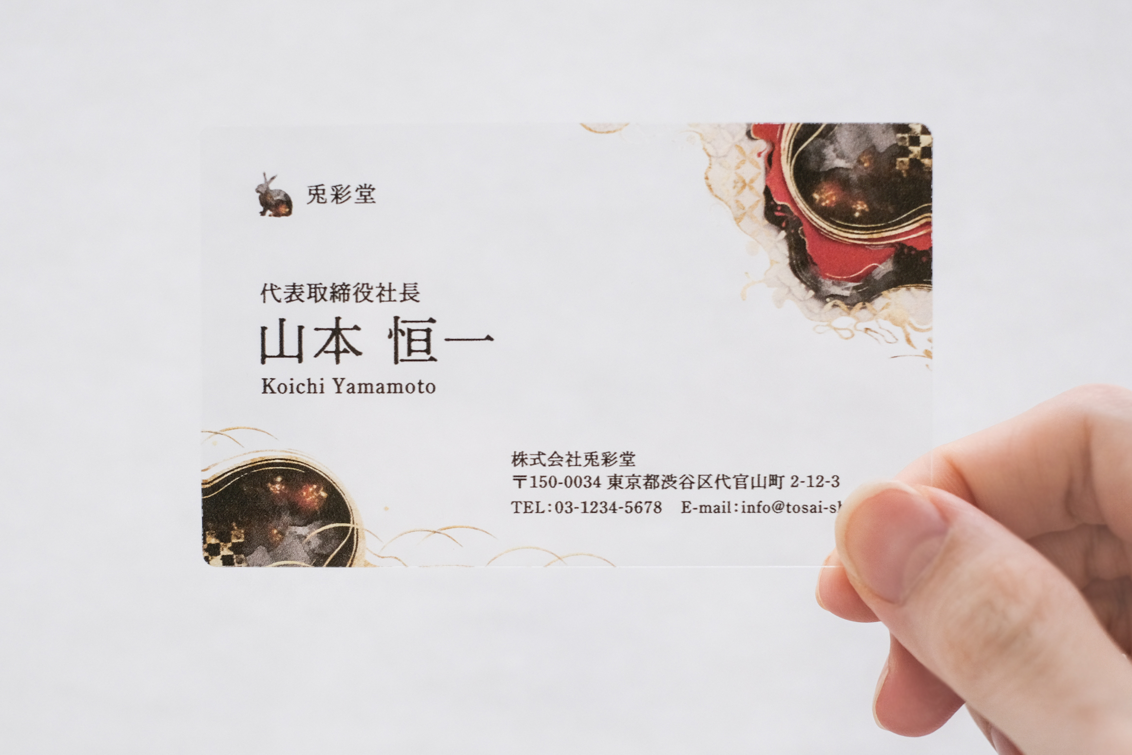 受け取った方に「面白い」と感じてもらえるような印象的な名刺にしたいと思い、珍しいクリア素材を使用した名刺を制作しました。