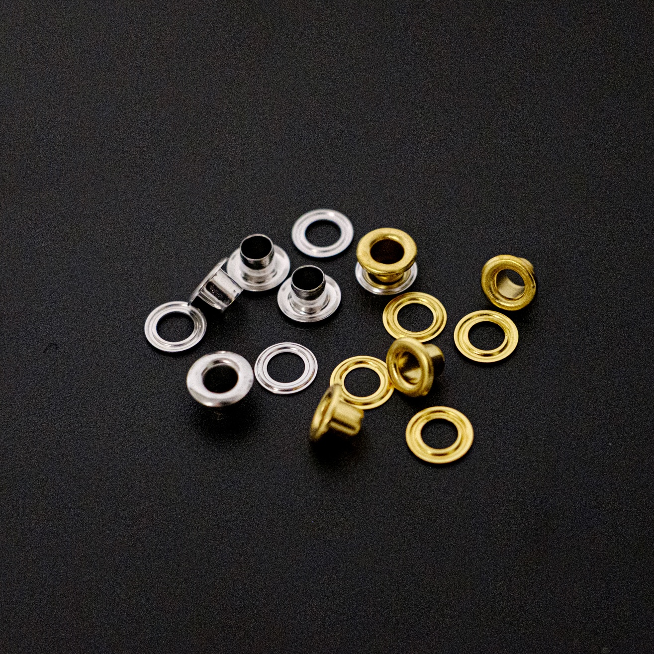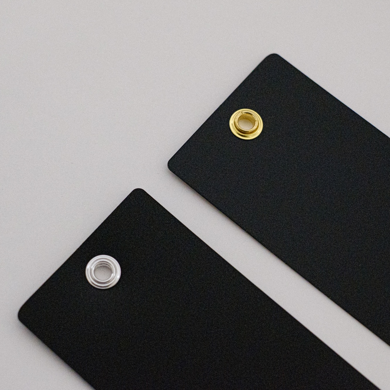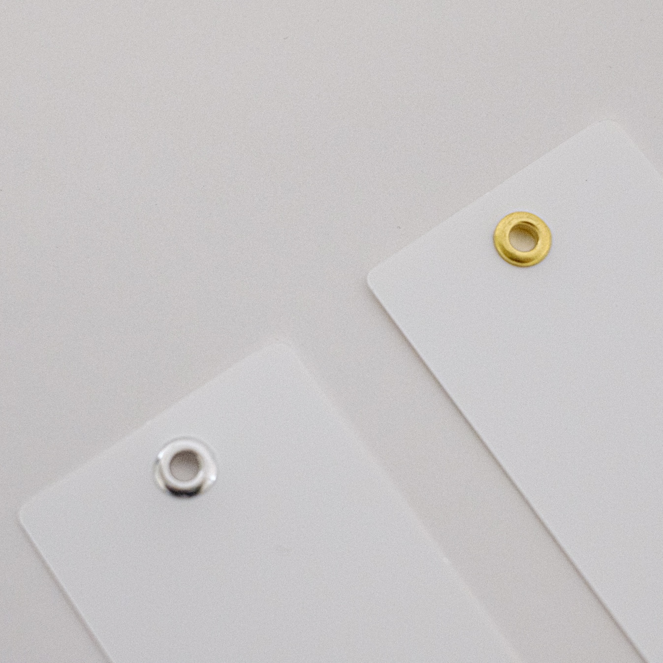 クリアしおりなど質感を上げるアクセントに両面ハトメの取り付けいただくことが可能です。両面ハトメの口径は4mmのみ、色数は金・銀の2色からお選びください。
