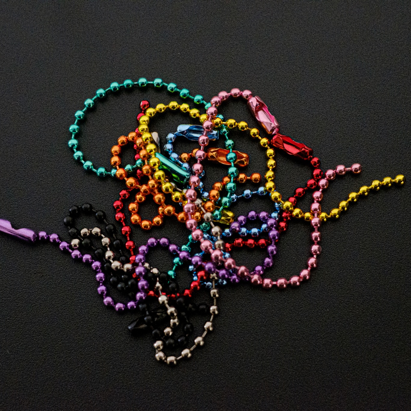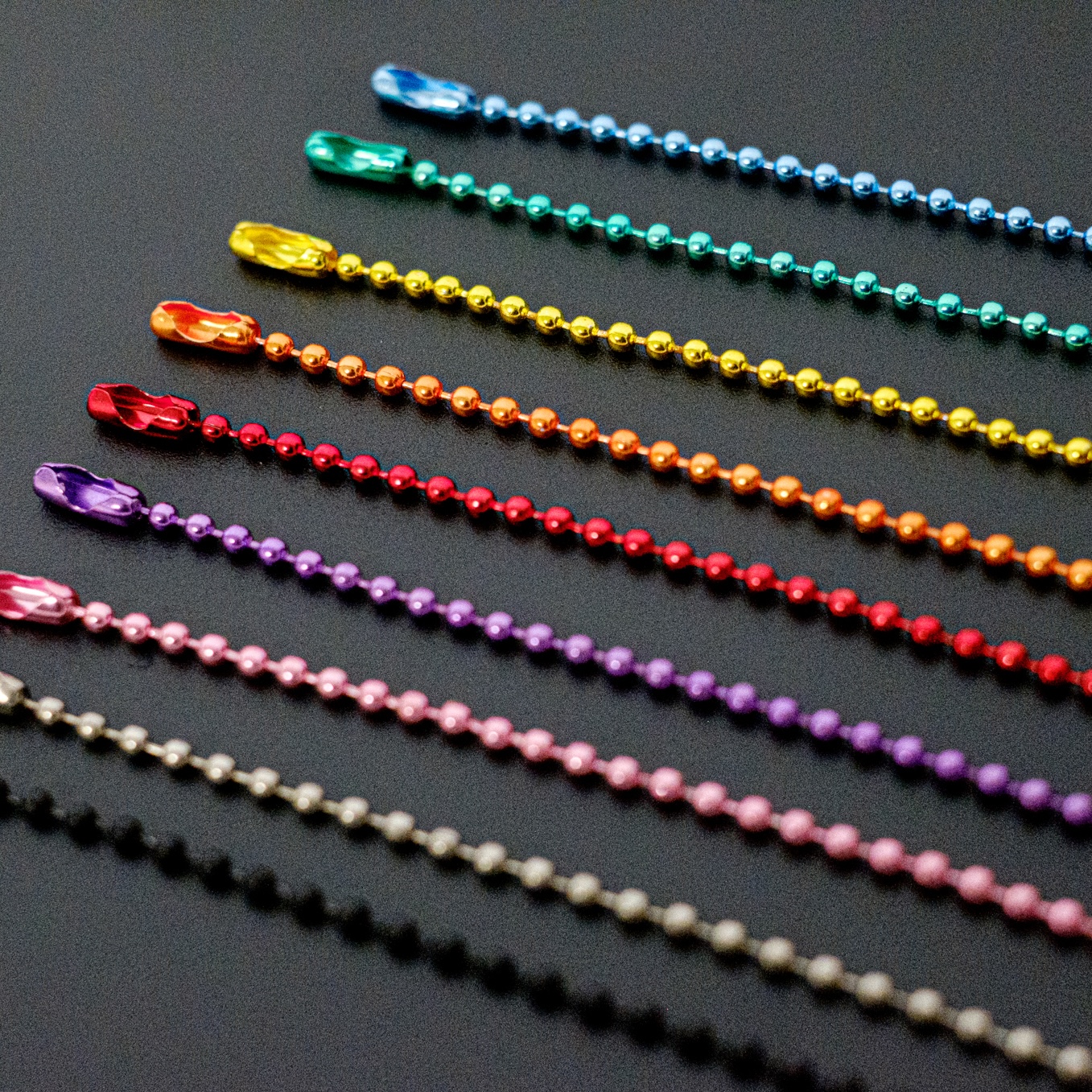 キーホルダー用としてよく使用するボールチェーンは、発想によってはクリアしおりなど質感を上げるパーツの役割としても使えます。ボールチェーンの色数は8色からお選びください。