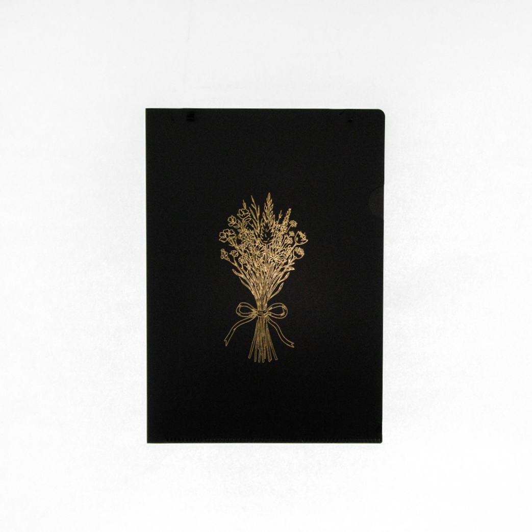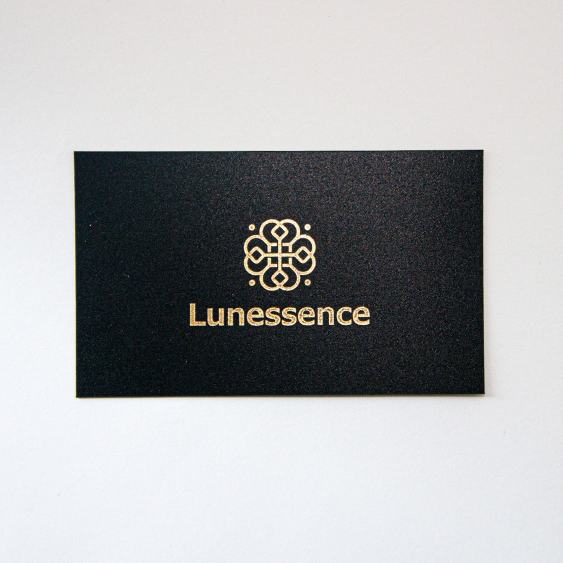 まず、転写させたいオリジナルのロゴや絵柄の金型(箔押し用の凸版)を作ります。金型と印刷物の間に箔を敷き、金型を上から押し込みます。その際、約170度の高温の熱と圧力をかけることで、印刷物に箔が熱転写されていく加工方法が“箔押し”です。箔押しをすると、金型と印刷物の接地面のみにゴールドやシルバーなどの箔が転写され、メタリックな輝きを放ちます。箔押し印刷は、自社の製品を際立たせ、高級感の演出や他社との差別化を図るのに有効な特殊加工になります。