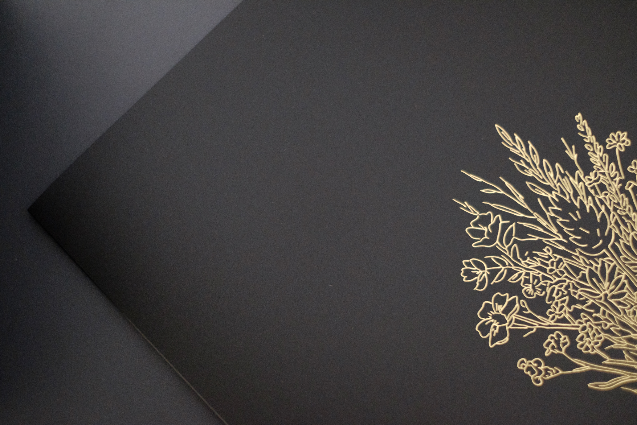 素材の高級感ある黒を活かした、箔押しのデザインもおすすめです。